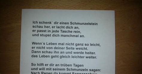 Ich schenk' dir einen schmunzelstein schau her, er lacht dich an, er passt in jede tasche rein, und stupst dich manchmal an.wenn's leben mal nicht ganz so leicht, er nicht von deiner seite weicht. А berlin für junge leute berlin ist immer in. Hier noch mal der text schmunzelstein ich schenk' dir einen schmunzelstein schau her, er lacht dich an, er passt in jede tasche rein, und stupst dich manchmal an. Schmunzelstein gedicht zum ausdrucken from i.pinimg.com. In einem säcklein oder in einer zündholzschachtel verschenken.